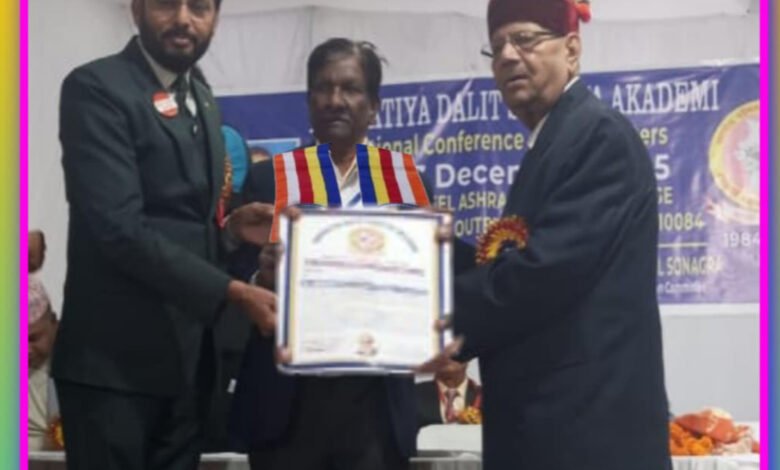 भारतीय दलित साहित्य अकादमी दिल्ली यांनी महाराष्ट्रातील तसेच देशातील अनेक राज्यांतील मान्यवर कवी कवयित्री, कलाकार, पत्रकार, नाटककार , लेखक यांची वेगवेगळ्या पुरस्कारासाठी निवड करण्यात आली होती. दिनांक १२ व १३ डिसेंबर २०२५ रोजी झडोंदा गाव, पंचशील भवन – दिल्ली येथे आयोजित केलेल्या भव्य कार्यक्रमात महाराष्ट्रातुन पुणे जिल्ह्यातील कवीवर्य *डॉ श्री जयद्रथ आत्माराम आखाडे यांना डॉ बाबासाहेब आंबेडकर राष्ट्रीय फेलोशिप अवार्ड- २०२५ पुरस्कार देण्यात आला. भा.द.साहित्य अकादमी – दिल्ली संस्थेचे राष्ट्रीय अध्यक्ष मा. प्रा. डॉ. एस पी सुमनाक्षर यांच्या शुभ हस्ते आणि आयु. संघ प्रिय गौतम , माजी केंद्रीय मंत्री, प्रमुख संस्थापक अध्यक्ष यांचे उपस्थितीत पुरस्कार देऊन सन्मानित करण्यात आले. त्यांचे विविध क्षेत्रातून अभिनंदन व शुभेच्छा दिल्या जात आहेत.*